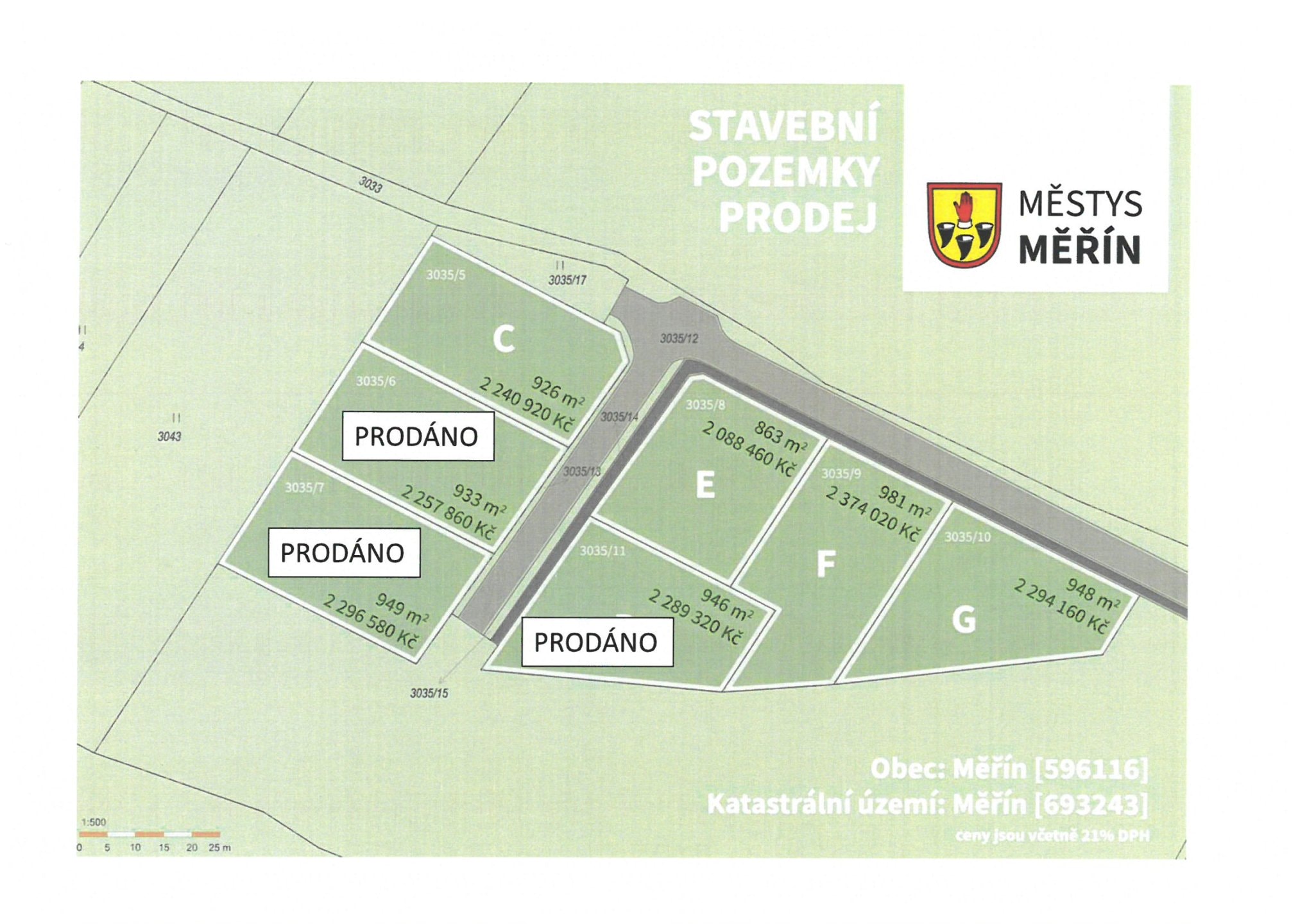 Prodej stavebních pozemků Měřín - lokalita východ