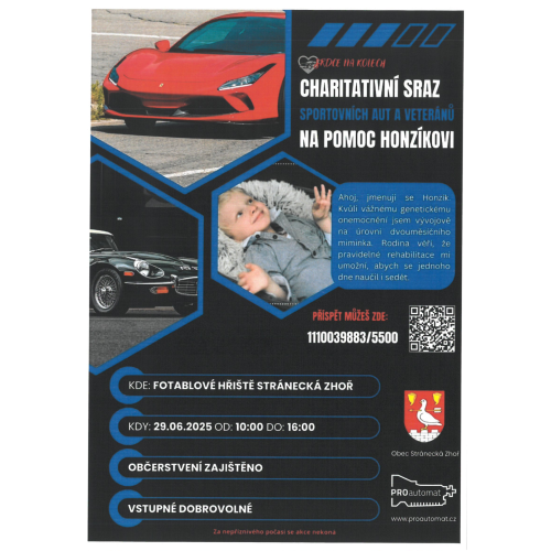 Charitativní sraz sportovních aut a veteránů na pomoc Honzíkovi