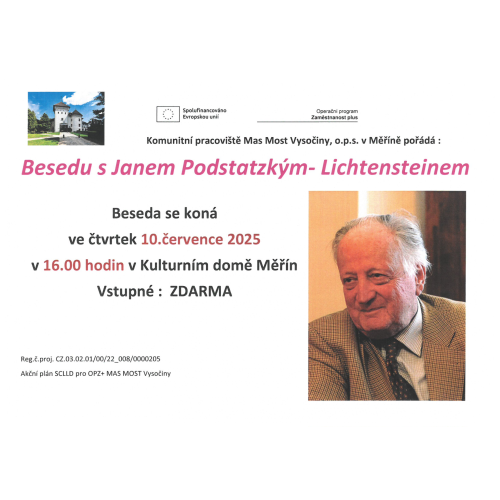Komunitní pracoviště Mas Most Vysočiny v Měříně pořádá 10. července v 16 hodin v Kulturním domě v Měříně Besedu s Janem Podstatzky-Lichtensteinem.…
