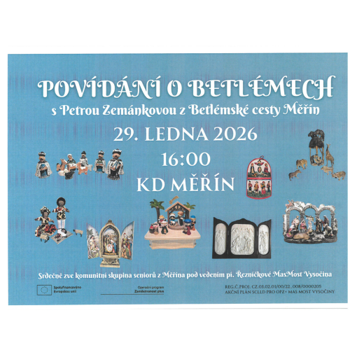 Komunitní skupina seniorů z Měřína pod vedením p. Řezníčkové Mas Most Vysočina srdečně zve na Povídání o Betlémech s Petrou Zemánkovou z Betlémské…