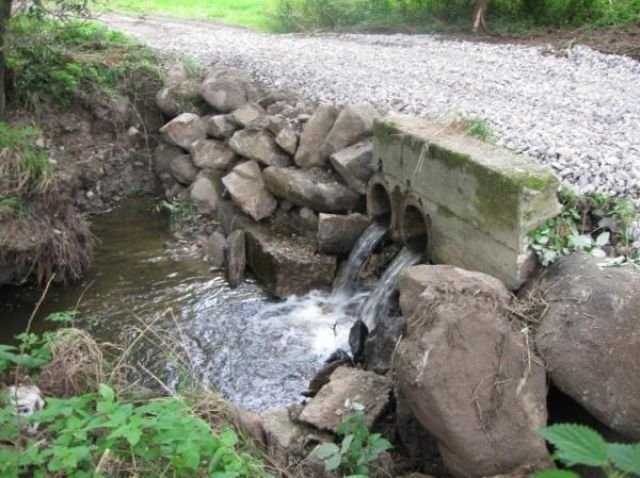 Takhle byla proveden v srpnu 2010 částečná oprava vodou strženého mostku v lokalitě "Strž" v Měříně.