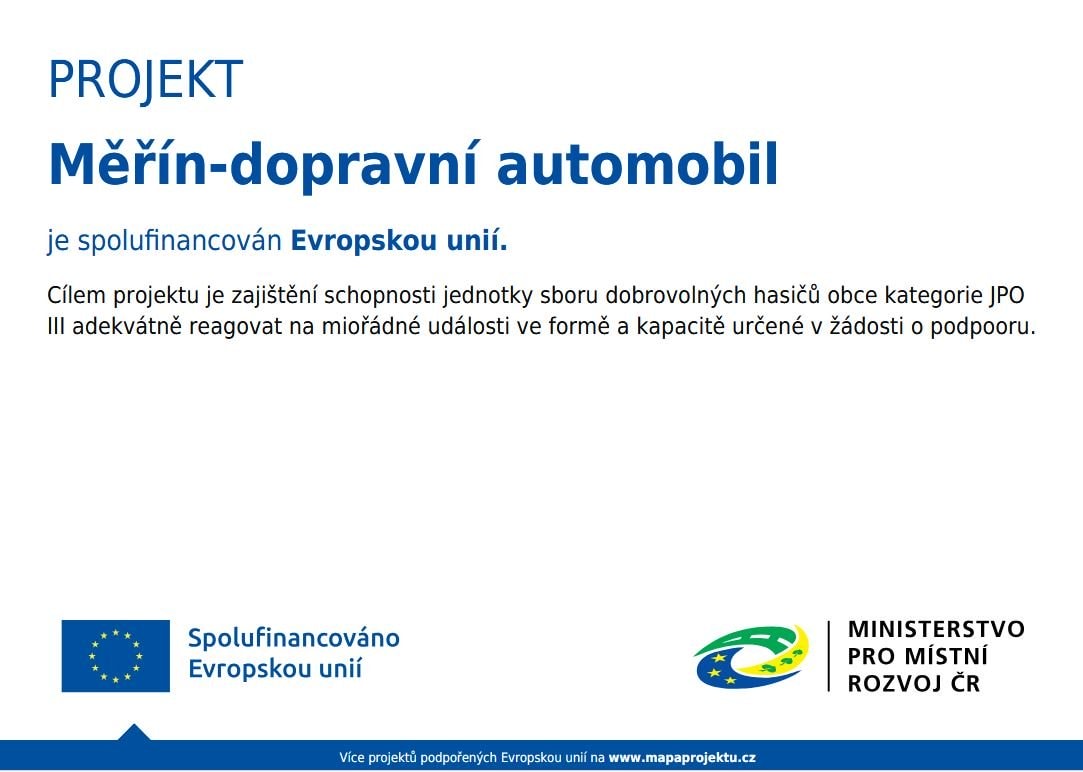 Účelem podporované aktivity je posílení odolnosti, vybavenosti a připravenosti jednotky SDH obce kategorie JPO III pro výkon služby: pořízení dopravního automobilu pro výkon činnosti JSDH obce Měřín.